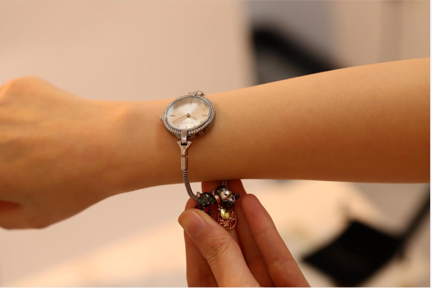 - Petit rappel : Les produits chimiques courants dans le parfum, la laque pour cheveux, le savon et la lotion peuvent ternir l’article de façon permanente. Veuillez éviter tout contact avec les agents de blanchiment, y compris les piscines. Ne portez pas vos bijoux lors des tâches ménagères, de la vaisselle, de l’entraînement, de la musculation, de la natation, de la douche, du jardinage ou lors de l’utilisation de substances chimiques.