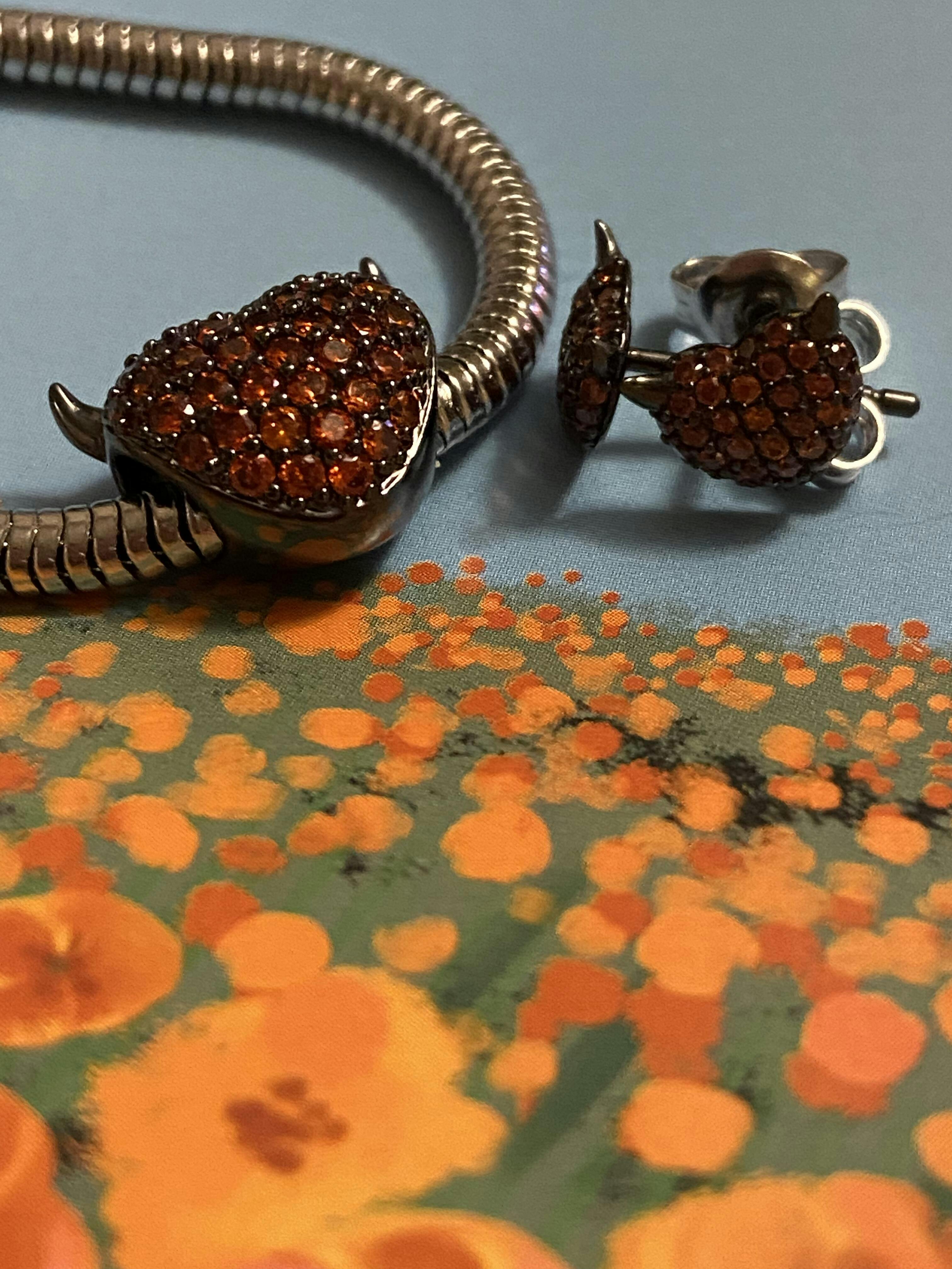 Ces clous d'oreilles cœur de diable rouge sont en argent avec des pierres précieuses rouges et une paire de cornes de diable très mignonnes, exquises et individuelles. Particulièrement adapté pour Halloween.