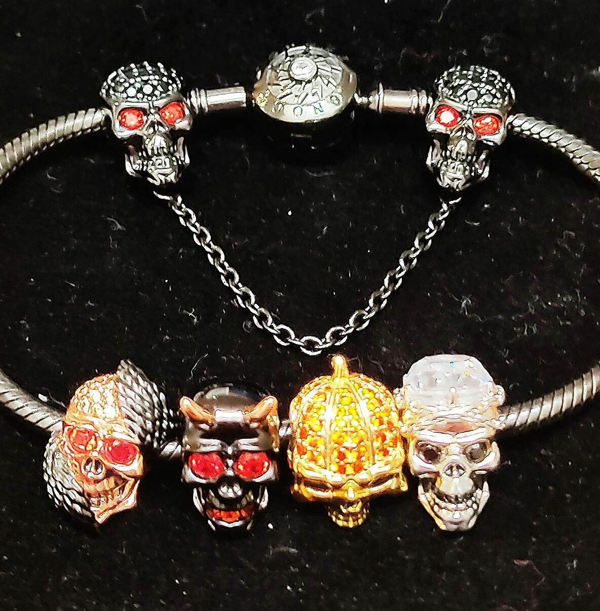 Choisissez votre style dans la vie, un charm crâne délicat fait un style unique. Avec des pierres pures cloutées dessus, le charm semble étincelant et brillant dans toutes les directions. Ce charm est uniquement conçu par l'inspiration des chaînes et des contraintes.
