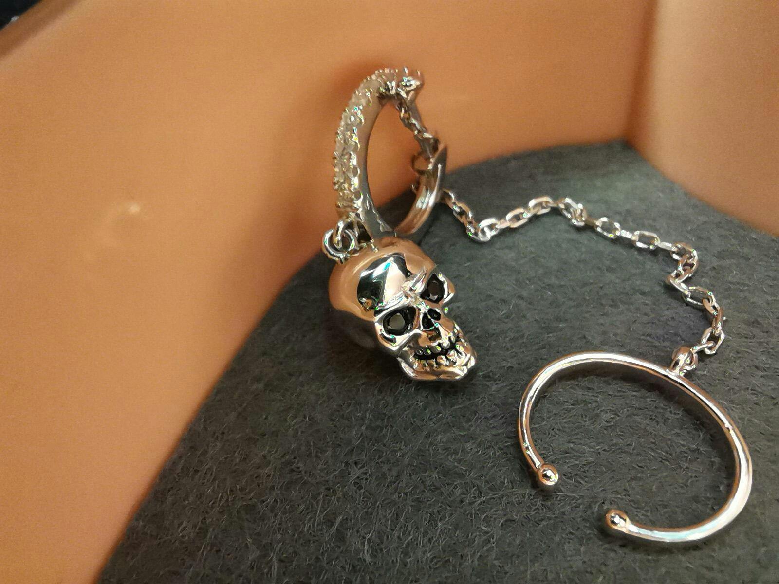 Ces boucles d'oreilles accrocheuses se composent d'une boucle d'oreille tête de mort et d'un clip d'oreille. Magnifiquement fabriquées à la main en argent 925 avec des pierres en CZ incrustées. Avec un look élégant et impeccable, la boucle d'oreille tête de mort attirera l'attention sur vous. Veuillez noter que cette offre ne comprend qu'une seule pièce.
