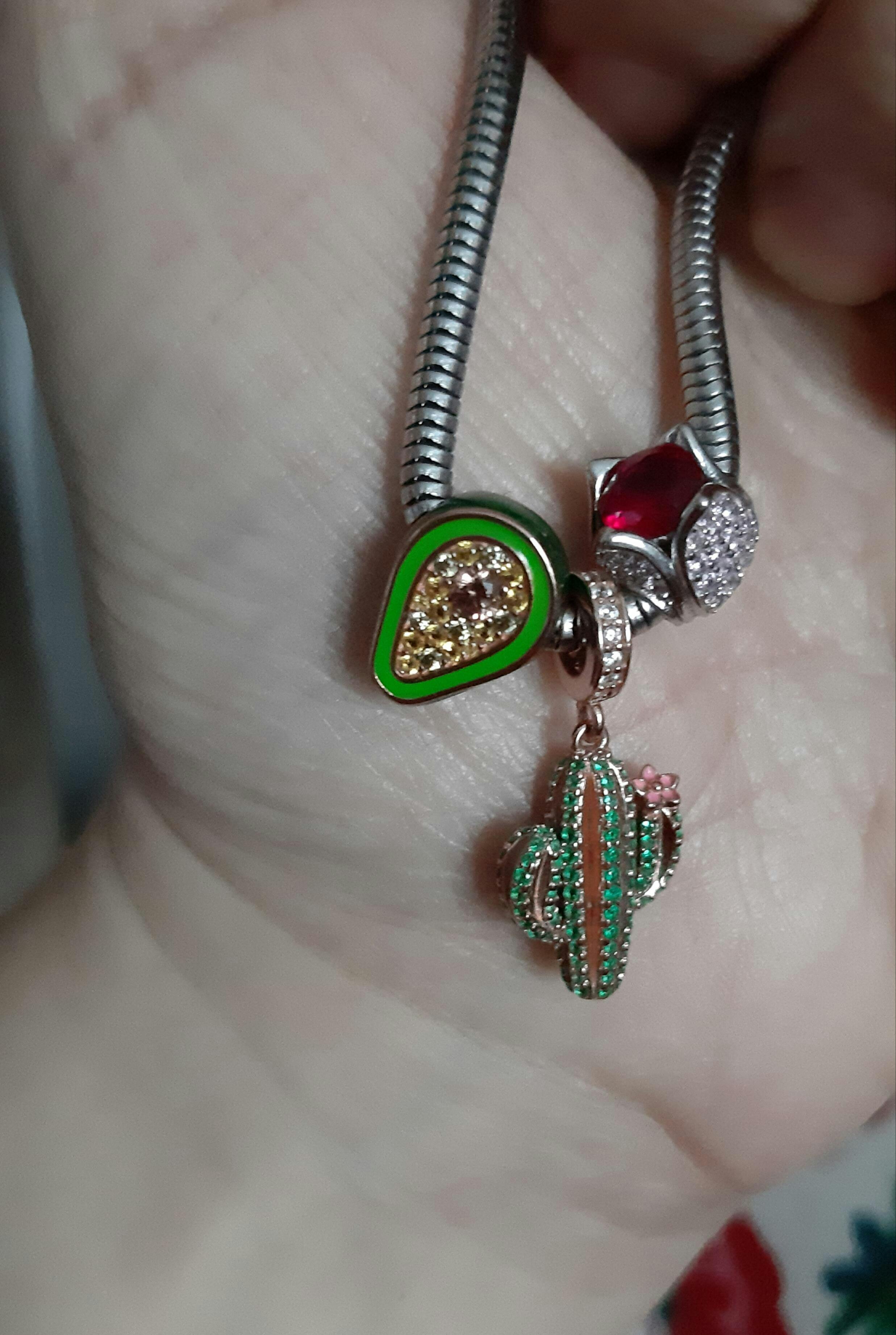 Si vous recherchez toujours des bijoux en cadeau pour la fête des mères, vous ne pouvez pas manquer cet adorable breloque en cactus en émail, en argent sterling et plaqué en or rose 18 carats. D'une finition exquise, il s'adapte parfaitement au bracelet ou au collier.