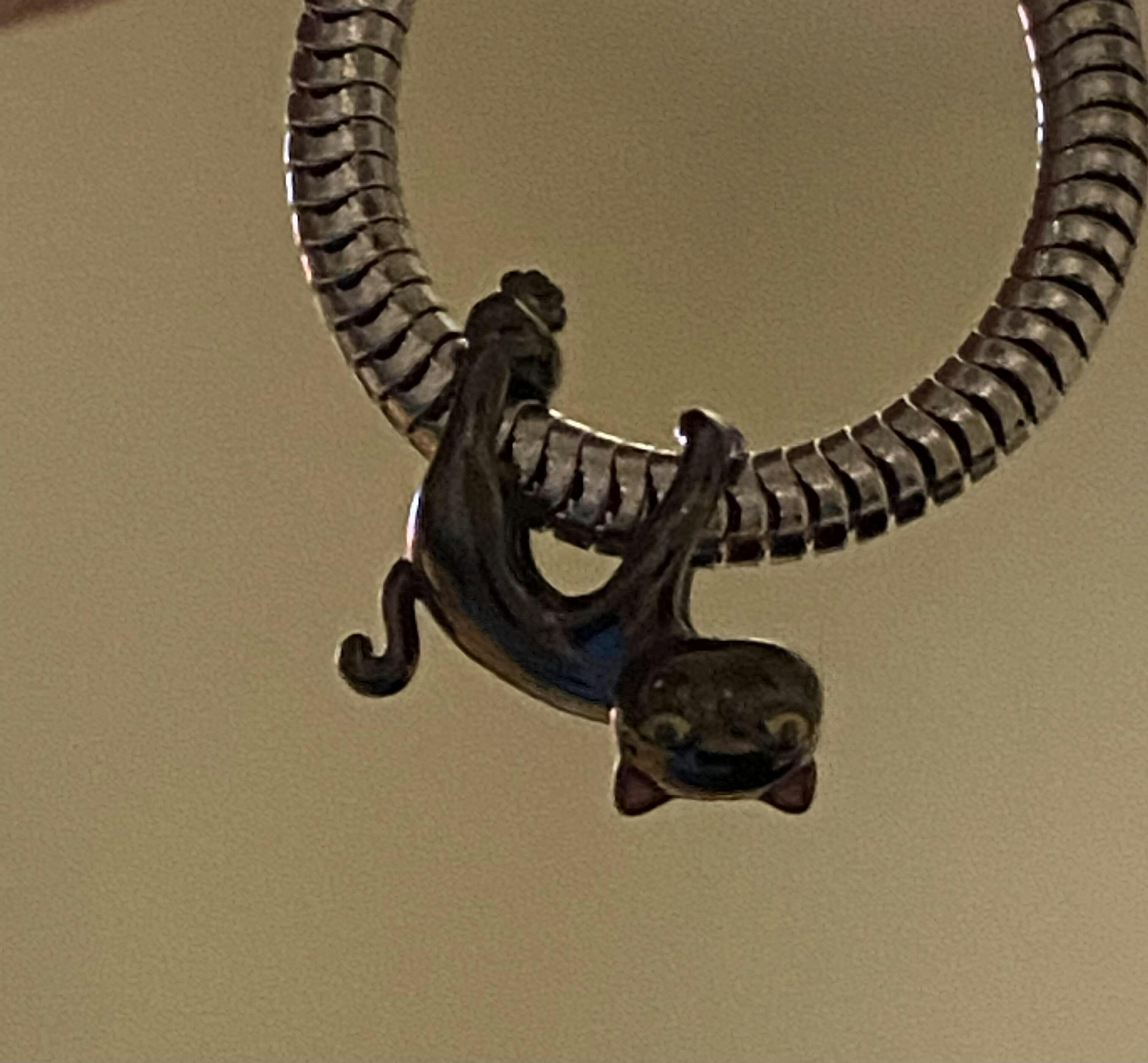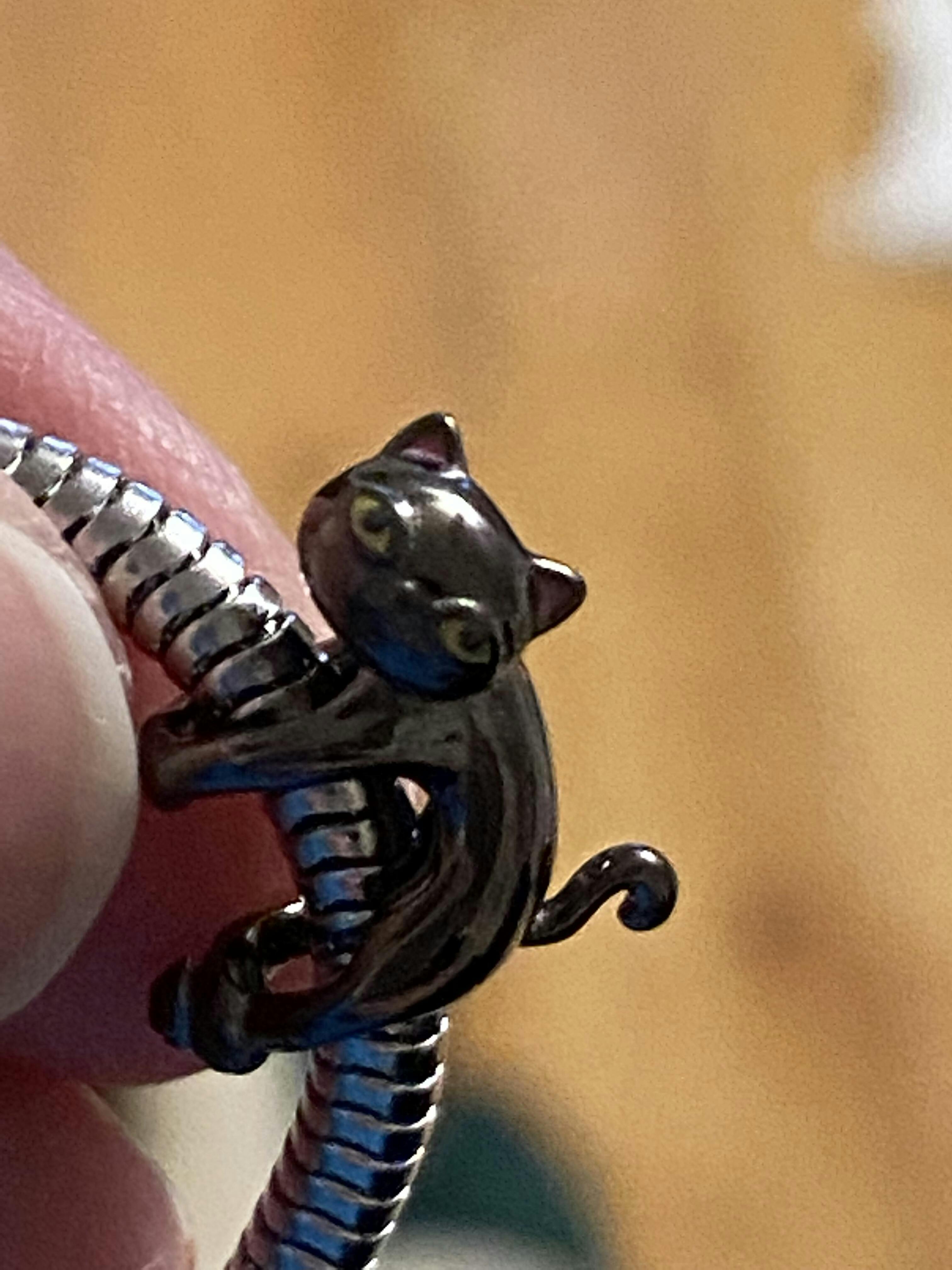 En regardant la posture de ce petit chat noir, il semble prendre plaisir à s'allonger sur le bracelet. Un beau cadeau pour les occasions décontractées.