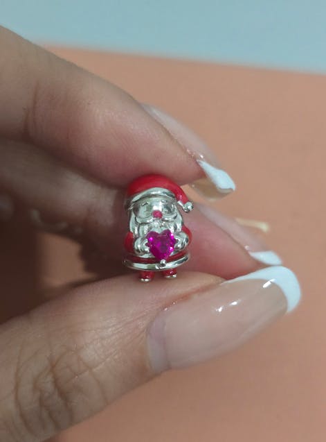 Capturez la magie réconfortante de Noël avec cet exquis charm Gnoce ! Méticuleusement fabriqué à la main en argent 925, il présente un joyeux Père Noël tenant amoureusement un cœur en pierre d'un rouge rosé vibrant. Ce design envoûtant symbolise la chaleur, l'amour et la générosité de la saison des fêtes. Cadeau de Noël parfait, il ajoute une touche festive et sincère à tout bracelet ou collier.